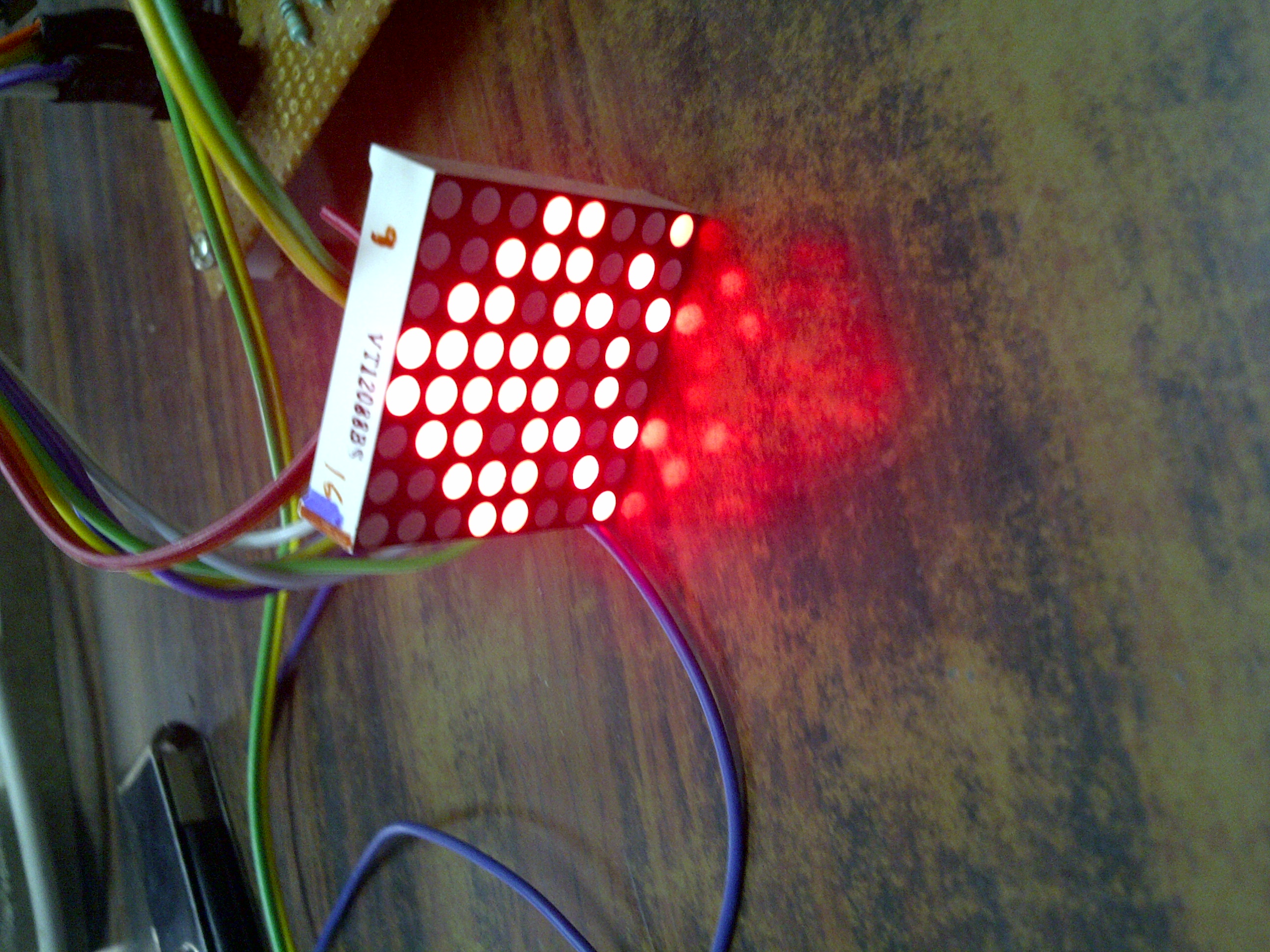 I had two 8x8 LED matrix lying around and a tiny2313, hoping one day I’d experiment with them,