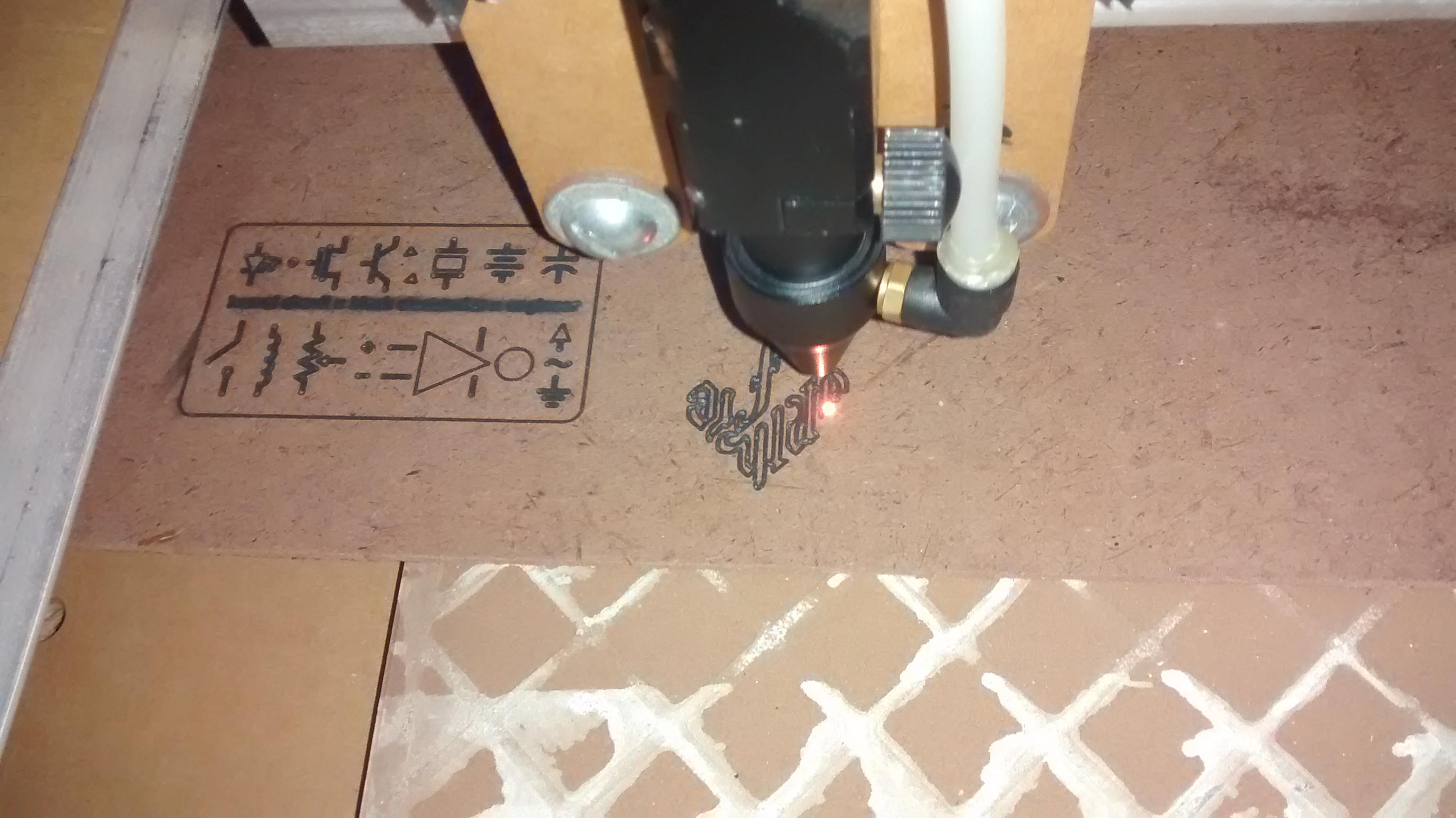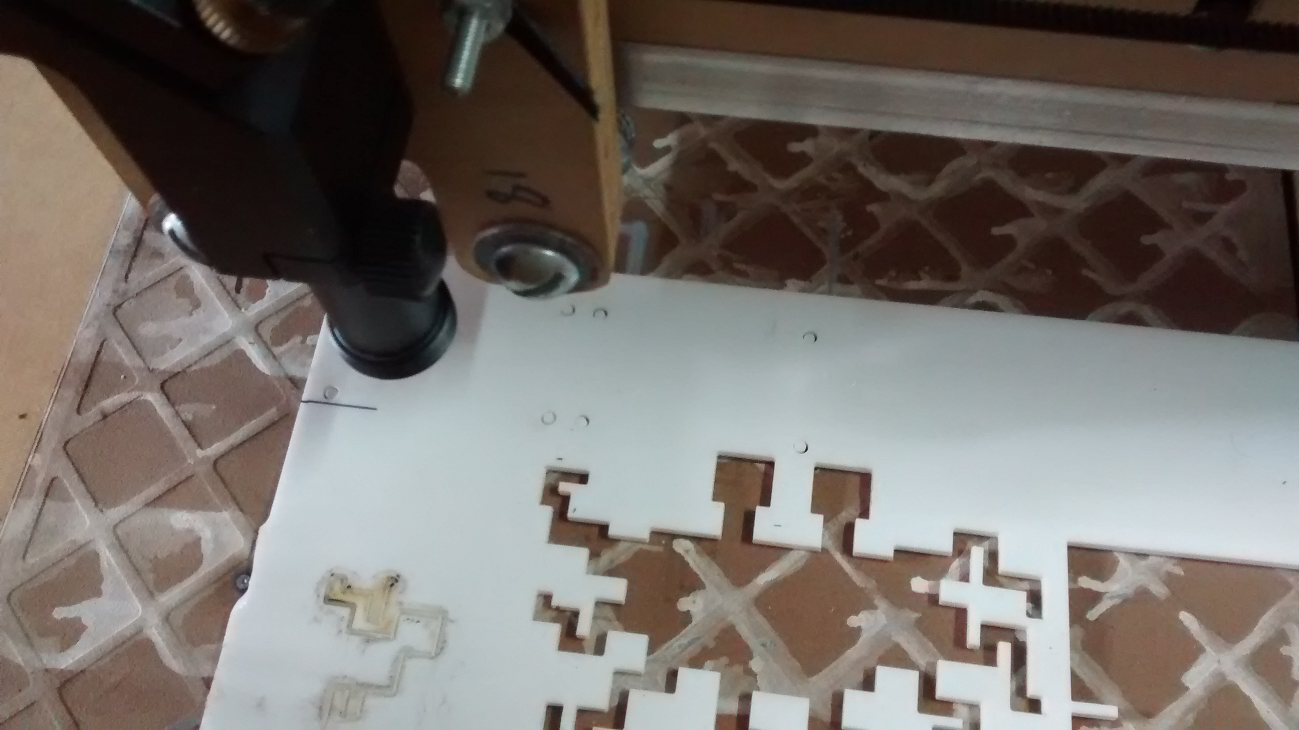 Last week was a pretty busy at the workshop. Finally the CNC laser cutter is up and churning out awesome stuff. The most difficult part was aligning the laser, burned myself once or twice in the process. Step by step after facing many hurdles it was aligned and focused. It is such an awesome feeling when you see the part come out from a piece of acrylic. I’m using inverted ceramic tiles to prevent the laser burning a hole though the ground.