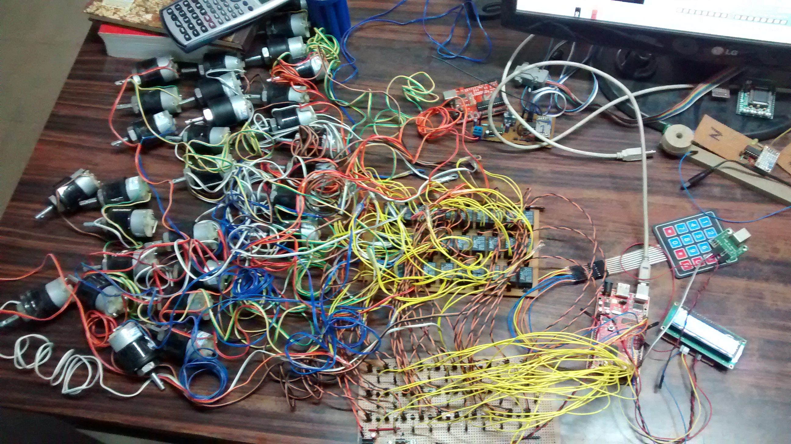 The most satisfying part, the project ran all day long with 0 errors. There are lots of places where improvements can be made, but this was just a one time thing and also all the control system was built in about a weeks time, The motors were powered from 6vDC using LM317, since at a time only one motor was actuated the current requirements were not too demanding.