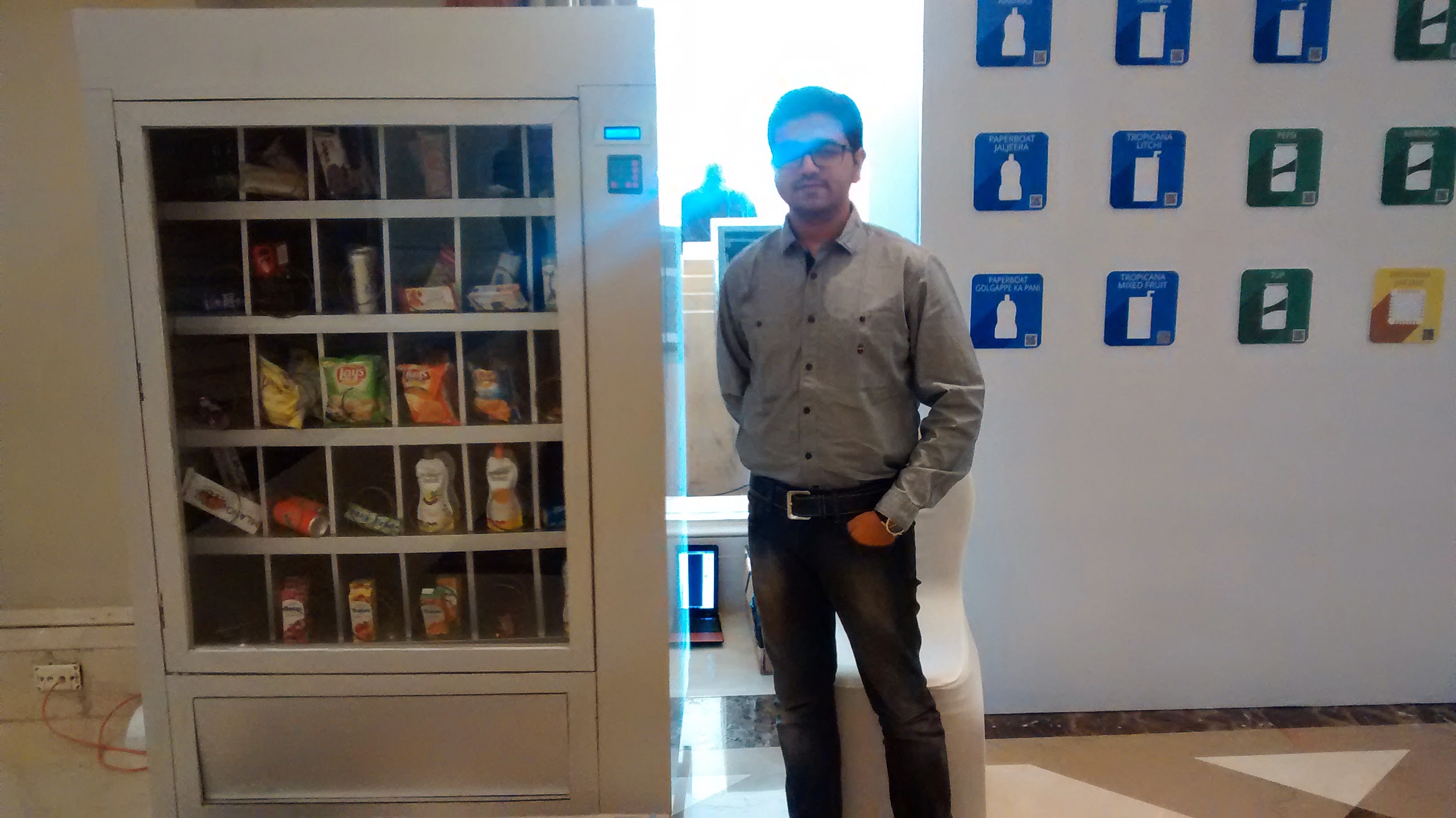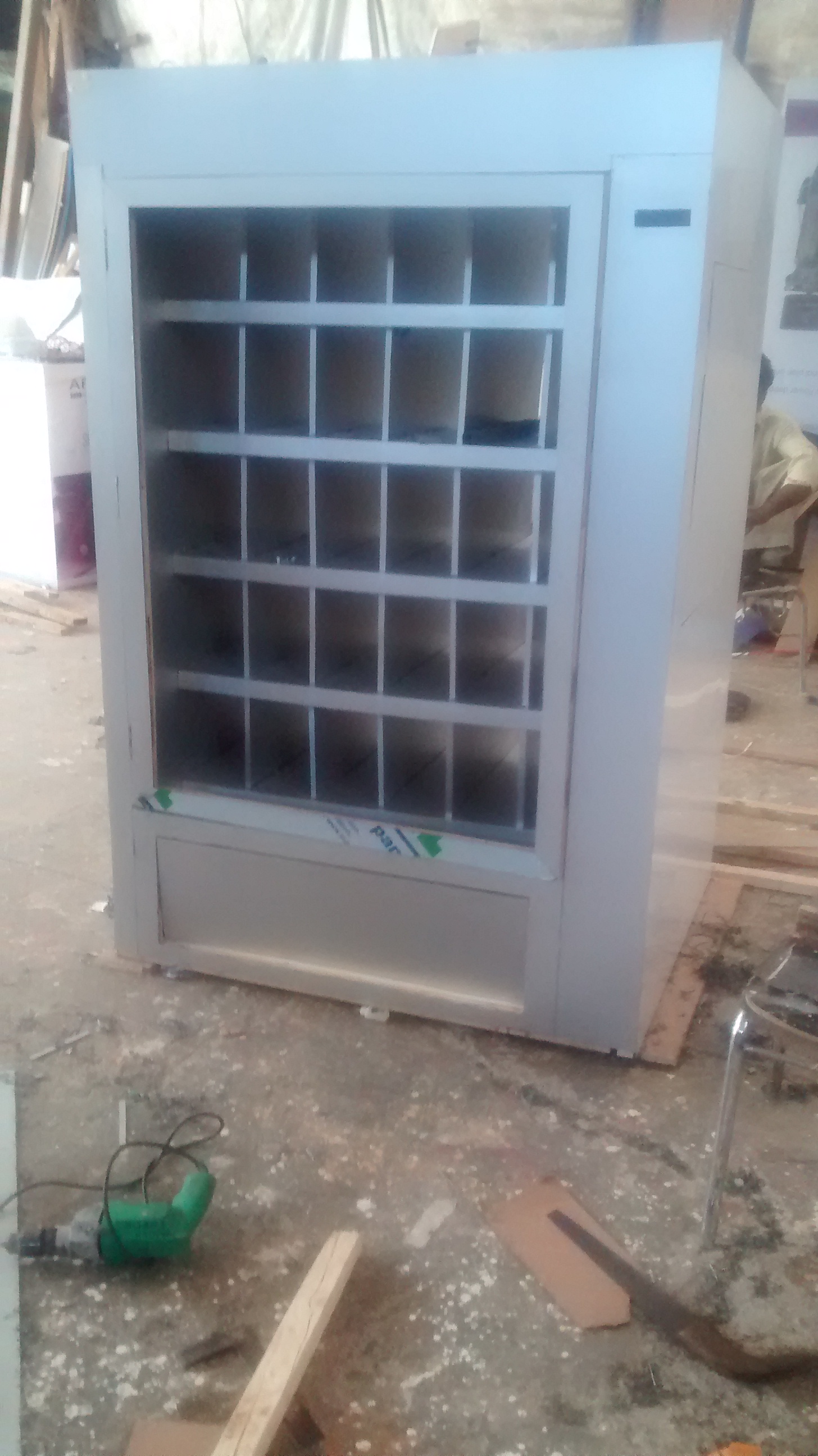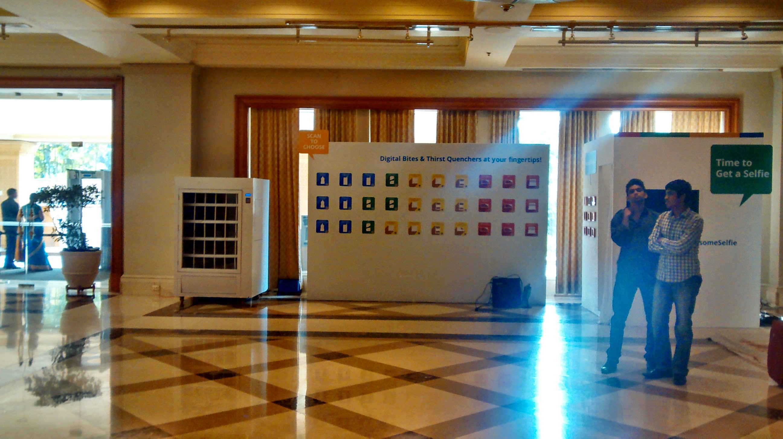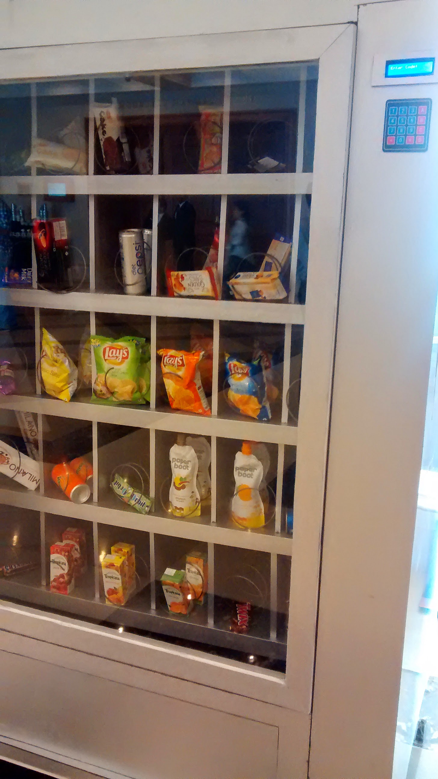 So it worked like this, there is a wall where there are pictures of 30 food items and an QR code on each item. Users come in and scan the code, the code takes them to a website where they put in their name and are given a 4digit pin, now next to the wall is the vending machine, they punch in the 4digit code and lo and behold, they are given the item for which they scanned the code.