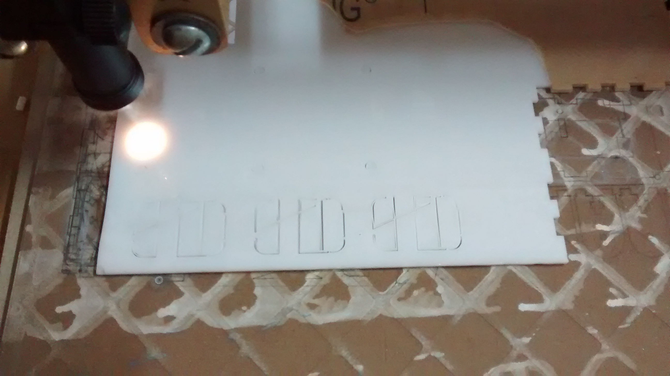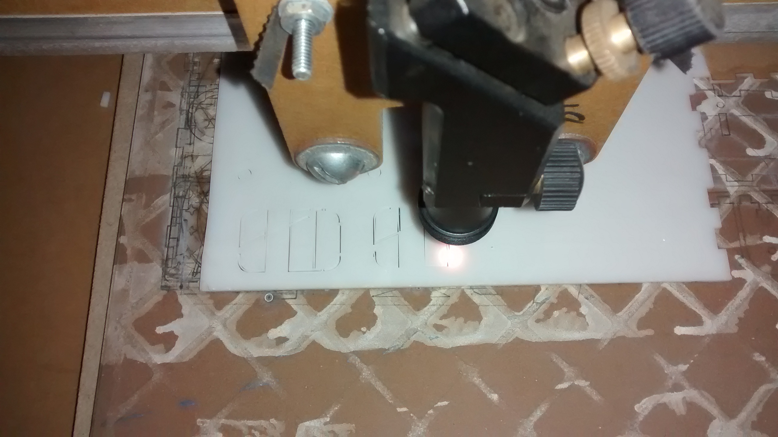 Started with a line logo which was made with Adobe illustrator, using cloudconvert the file was converted to SVG so that it can be opened up with Inkscape and converted the object to path. After this the file was imported to Qcad and added the tabs and the whole and the body. Once the dxf was ready it was time for motion planning and generating the G-code, I used dxf2gcode. Once the g code was ready, I fed to EMC and then the steppers started turning. Below is a gallery showing the process. Feast your eyes!