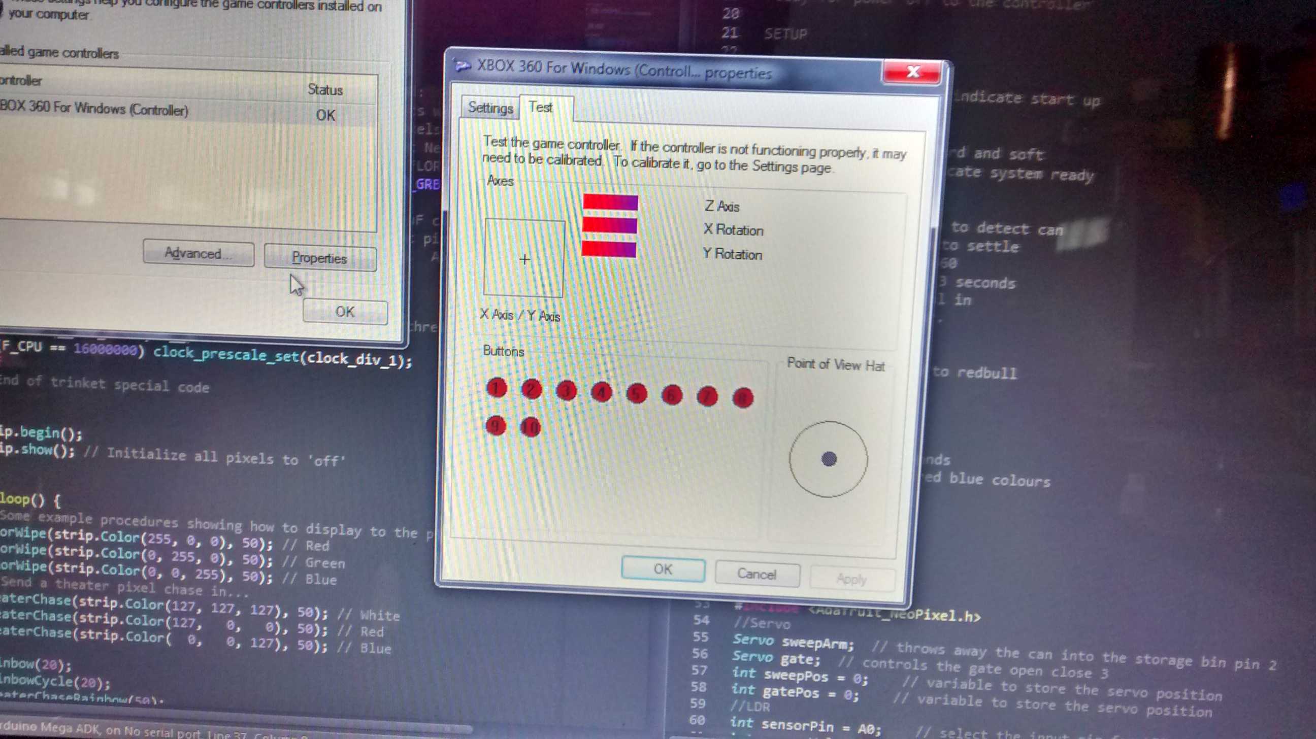 In total I tested 1. barcode scanner button 2. can rotation motor 3. x box controller on/off 4. arm motor that dumps the can in storage 5. gate motor 6. communication with barcode scanner 7. RGB led 8. Simulating button presses on the x-box controller