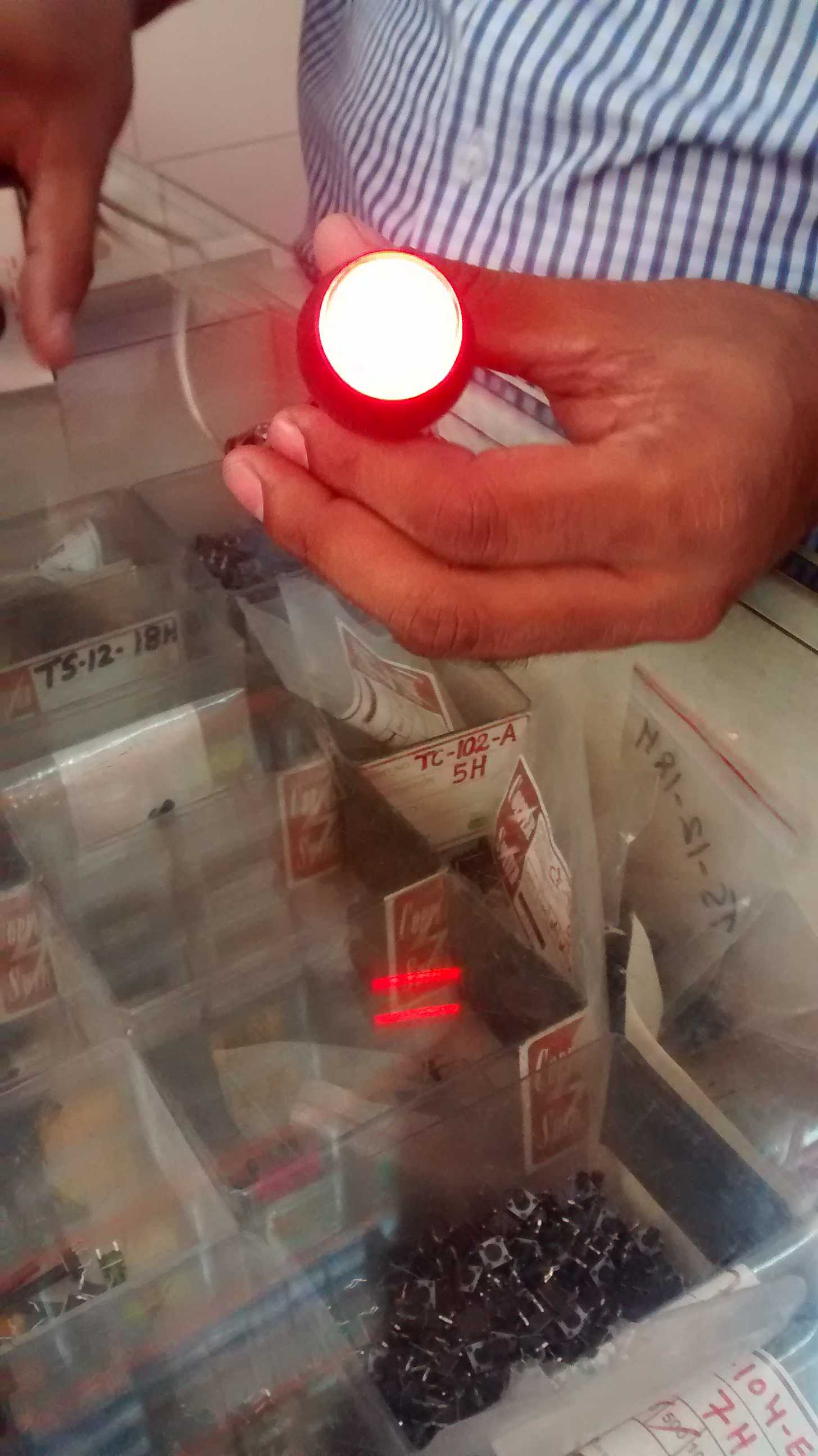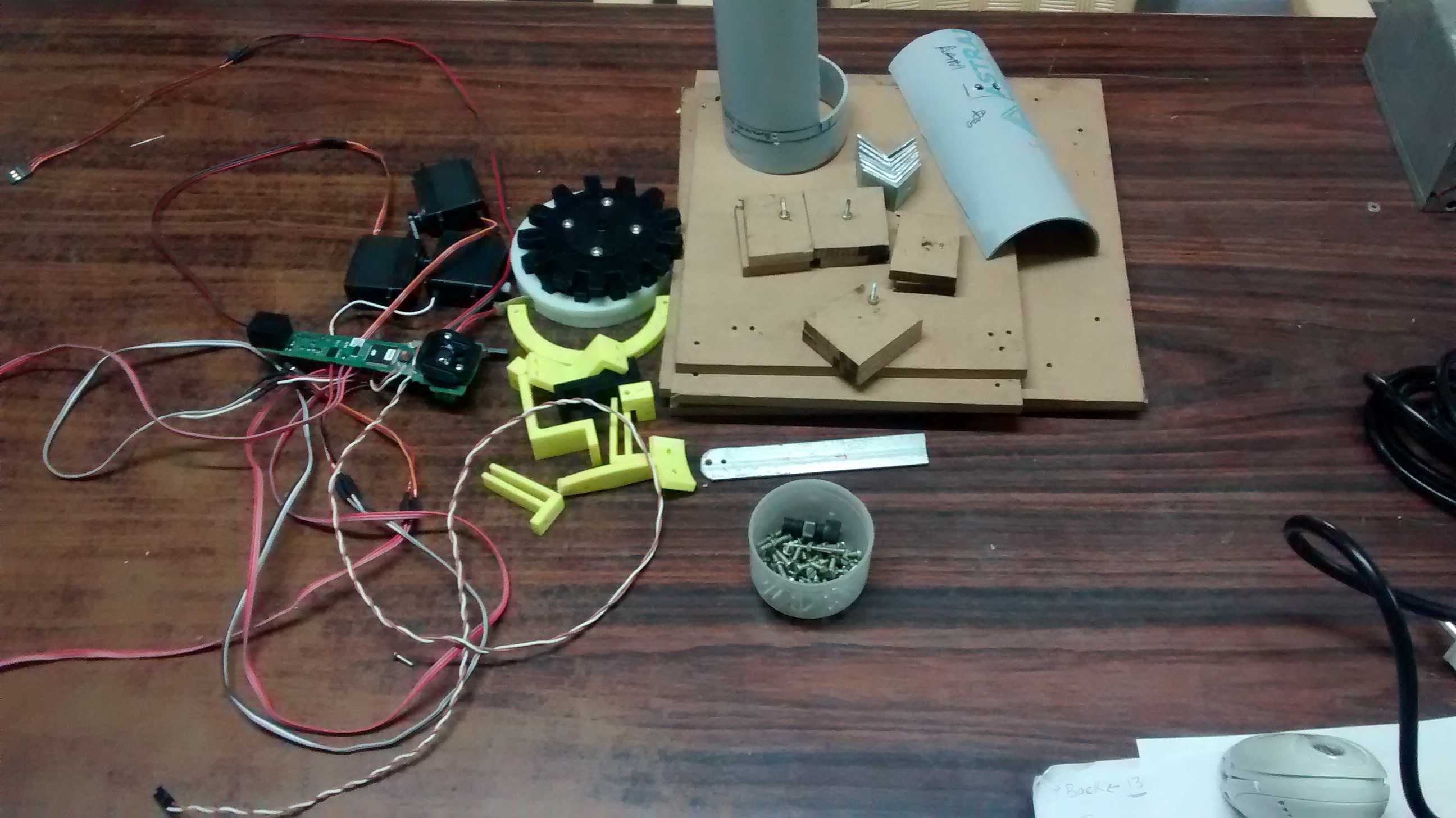I’ll be doing the shopping of rest of electronics components tomorrow,and preparing for an event on Saturday. On Sunday I’m going on a one-day religious tour with family. So no major updates on Saturday and Sunday I’ve asked the mechanical design team to assemble the scanner mechanism in the mean time. Update #5 Did all the shopping of all the electronics components and cables and cable management. Also got the arcade buttons and the joystick, I’m not too happy with the quality and the feel of it, I purchased them never the less so I can start working on it, I’ll be buying better ones online. The self lit button are of good quality and available in four colours. I’ve sent the pics on Skype.