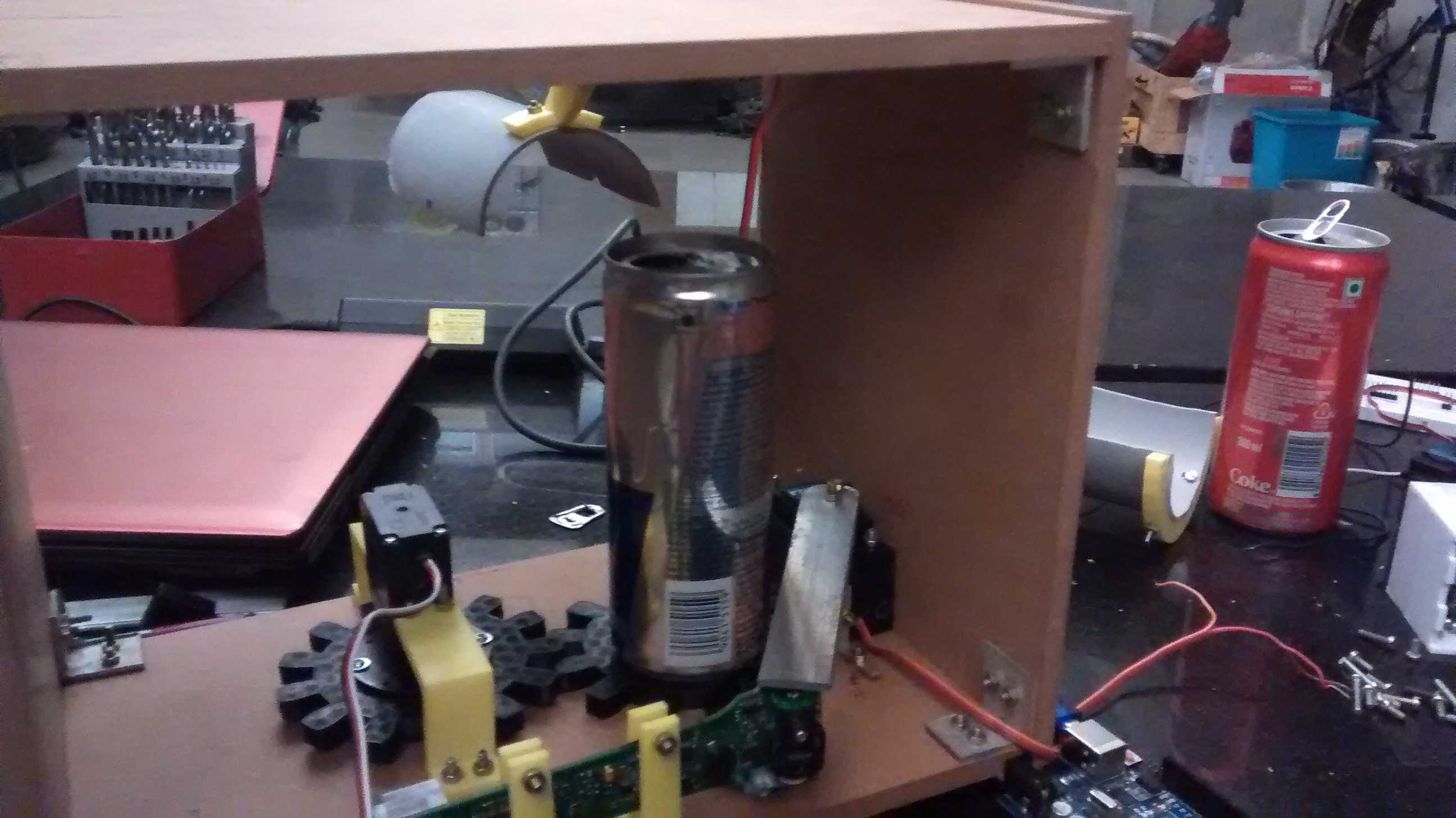 This project was done in about 35 days from start to finish. I started work on the can scanner mechanism and once that was done, I disassembled it, packed it and reached Dubai, I designed the machine in sketch up, which was a high level design, the final design to manufacture and manufacturing was done by SAMA production. While the machine was being fabricated I was working on the firmware. When that was done, I started the integration. There were some hiccups on the way but were managed.