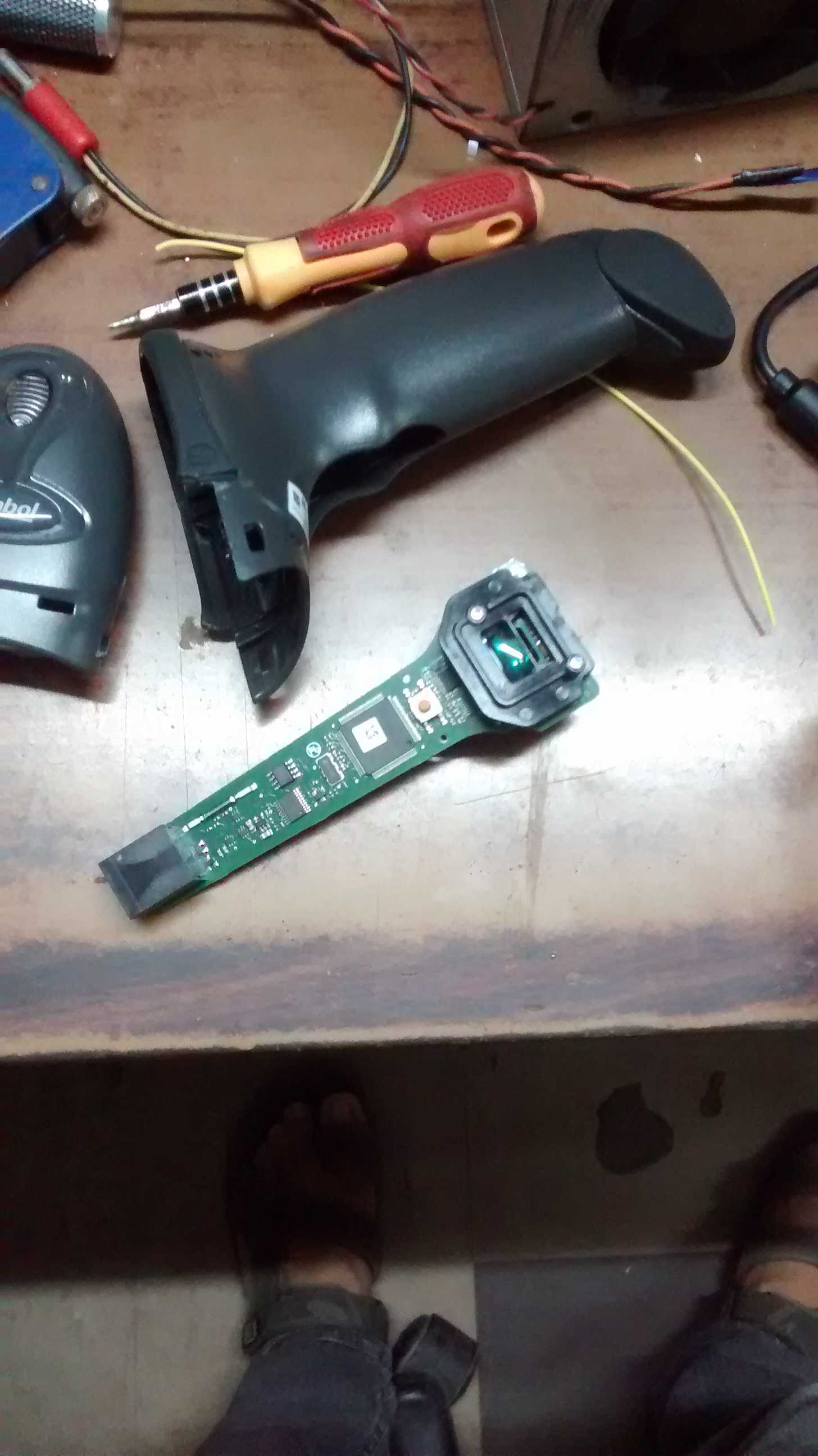 Update #2 Hacked up the bar-code scanner so it can be mounted in the mechanism. Purchased Xbox controller and studied the insides, it is a common ground type so less mess of wires. The mechanism is taking shape, we should have it done by this weekend. The one we design yesterday was failing at times, so we are adding one more motor so that we get 100% success in bar-code scanning, also it is possible to scan the can upside down, but it will not rotate properly if the tab/cap is present. If the tab is removed we can scan the can upside down. I’m not able to work on electronics as I’ve to sit with the mechanical designer and guide him. The slots you see in the design are for the bar code laser and the arm that would sweep the can after its read.