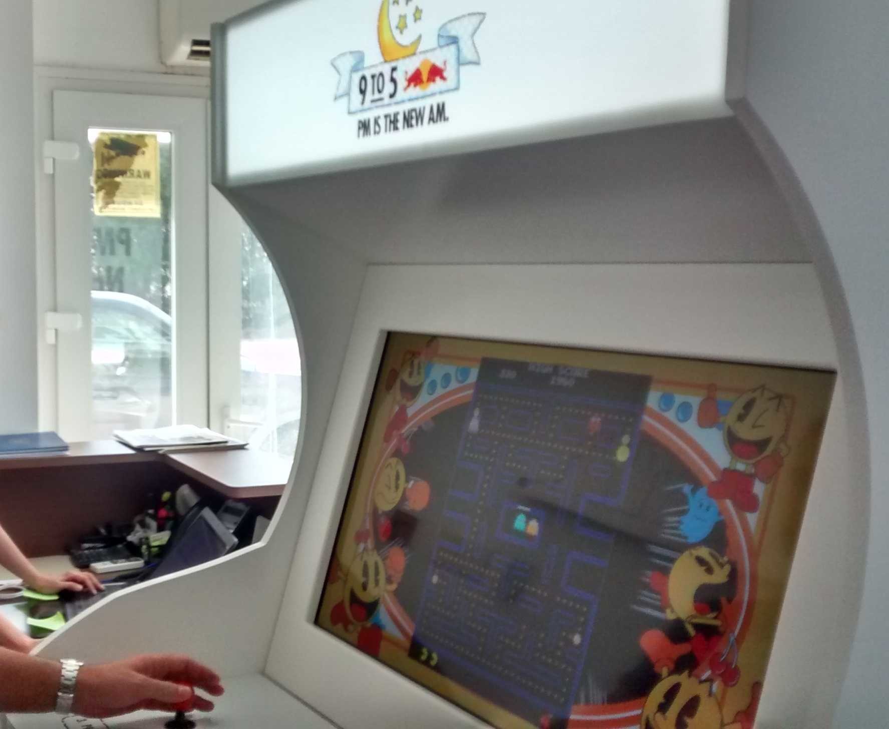 Drop Redbull can in the arcade machine and play game.