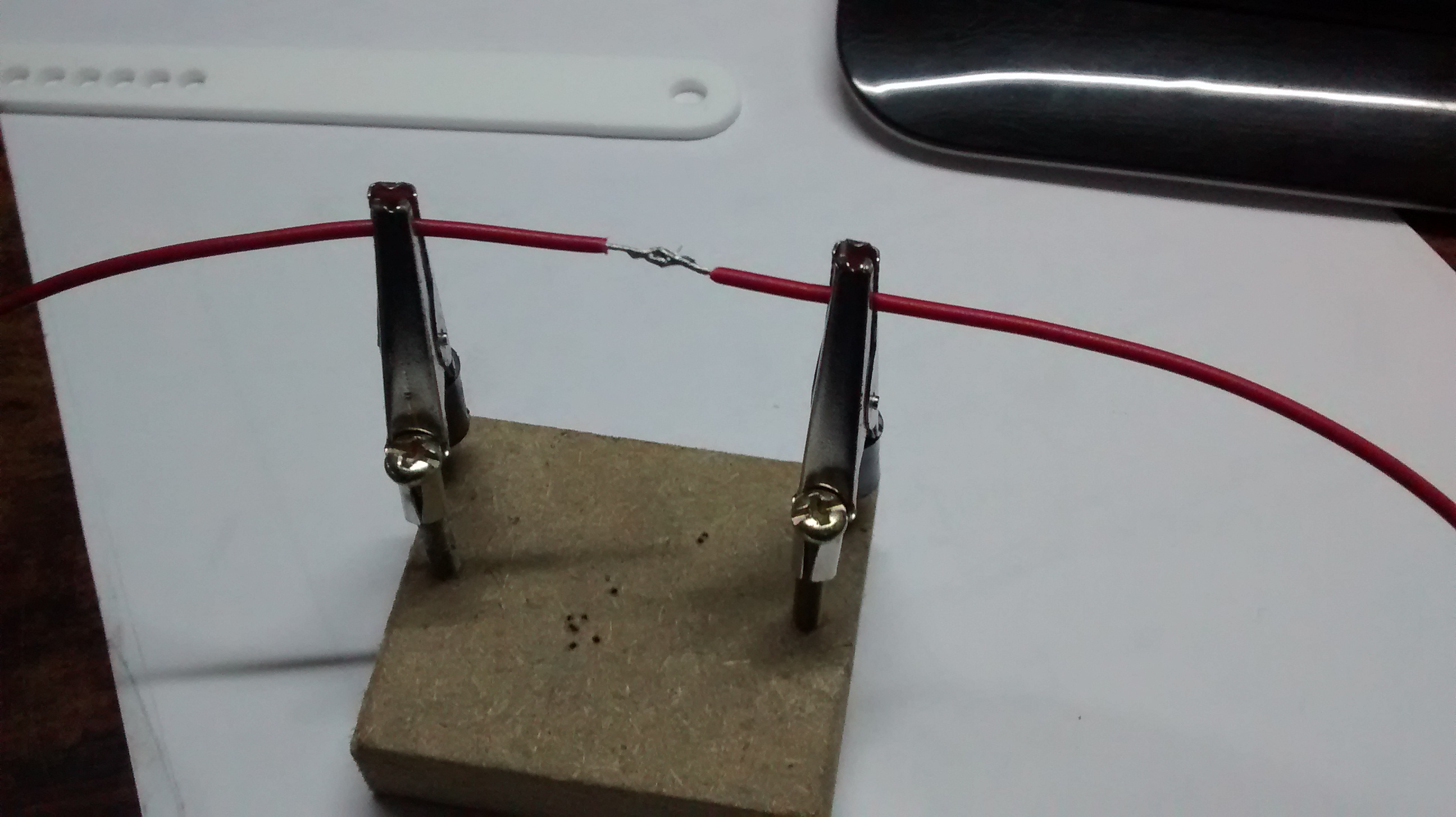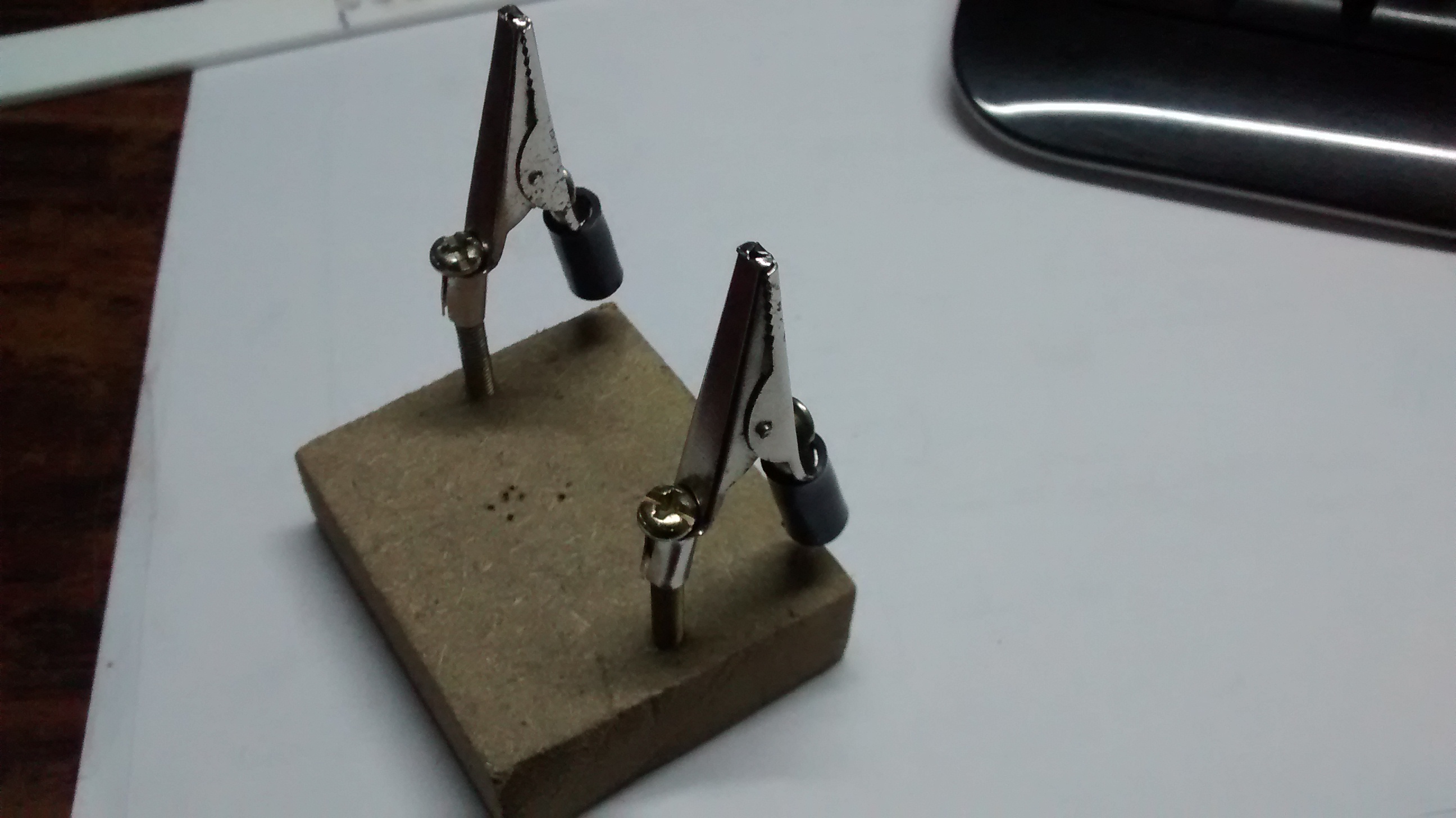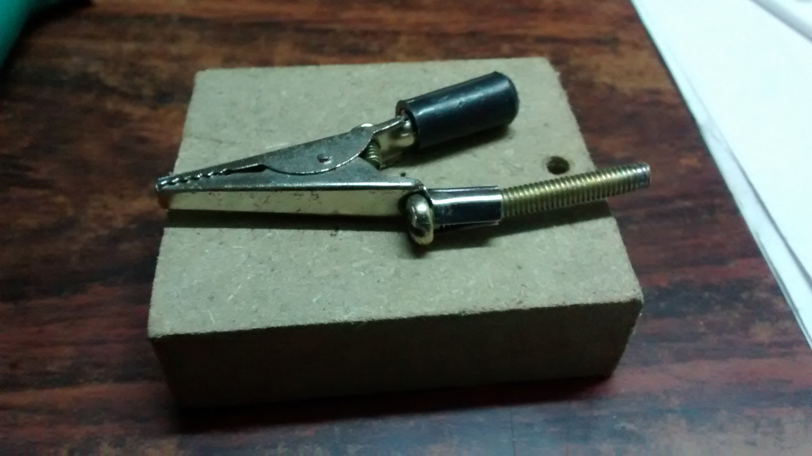 You need just 5 items to make this,two M4 screws, two crocodile clips, one scrap piece of wood.